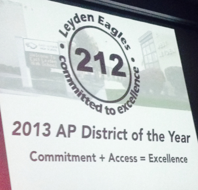 The National College Board honored Leyden High School this morning with the distinguished recognition of the 2013 Advanced Placement National District of the Year. It was exciting to see so many former School District 81 students being during the event.