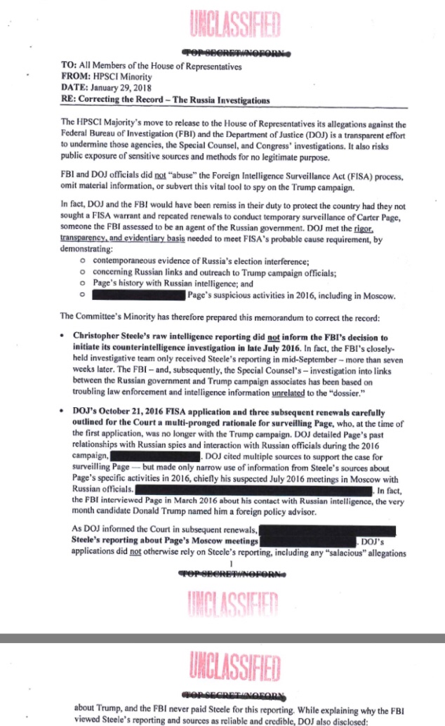 Democrats released a redacted memo over the weekend rebutting Republican claims of surveillance abuse. Read it here.