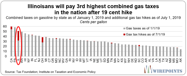 Before the hike, Illinois’ gas taxes ranked 21st in the nation. After taking into account 2019 tax hikes across the nation, Illinoisans will pay the 3rd-highest combined taxes on gas.