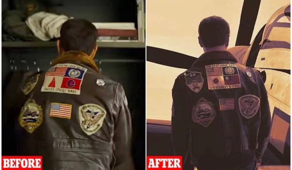 In the original 1986 classic, Lieutenant Pete ‘Maverick’ Mitchell wears a leather bomber jacket featuring patches on the back, commemorating his father’s battleship tours to Japan and Taiwan in 1963 to 1964.