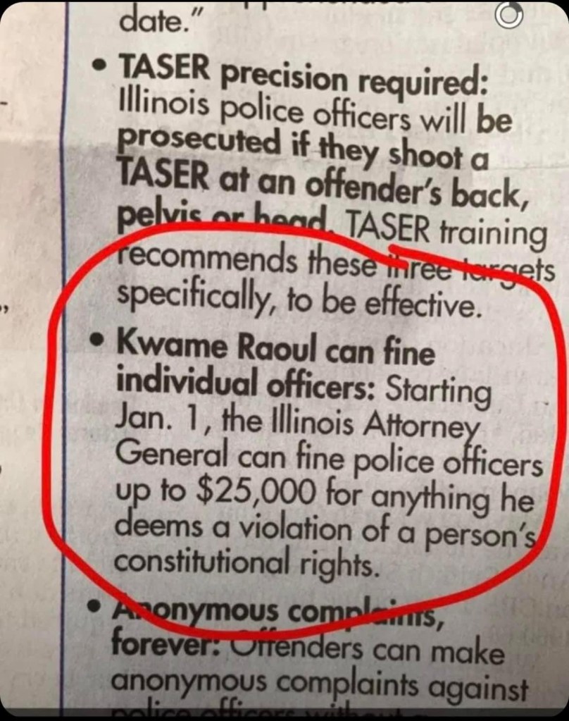 However, in the well-justified attention to the Bond provisions of the law, there is little attention being paid to the sections of the law that directly affect Law Enforcement officers in Illinois. As dangerous as the the no-cash bond provisions are, in my opinion the following sections endanger our officers and will fuel the current exodus of officers while hindering recruiting. I see some constitutional issues with the provisions that eliminate the requirement that officers accused of misconduct must be provided with the identity of their accuser, and the identity of the official conducting the investigation or interrogation of the officer.
