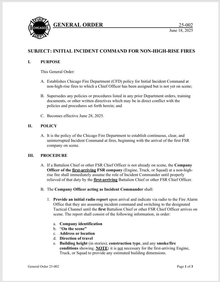 This new guideline is motivated by the City of Chicago’s desire to reduce the number of injuries or duty-deaths sustained by CFD.
